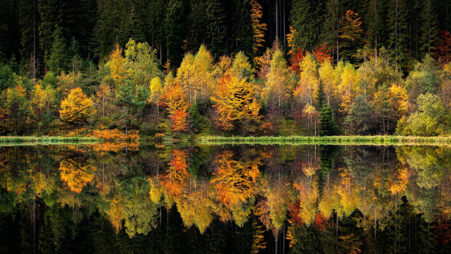 标签: 秋意正浓 深秋 树林 倒影 五彩林